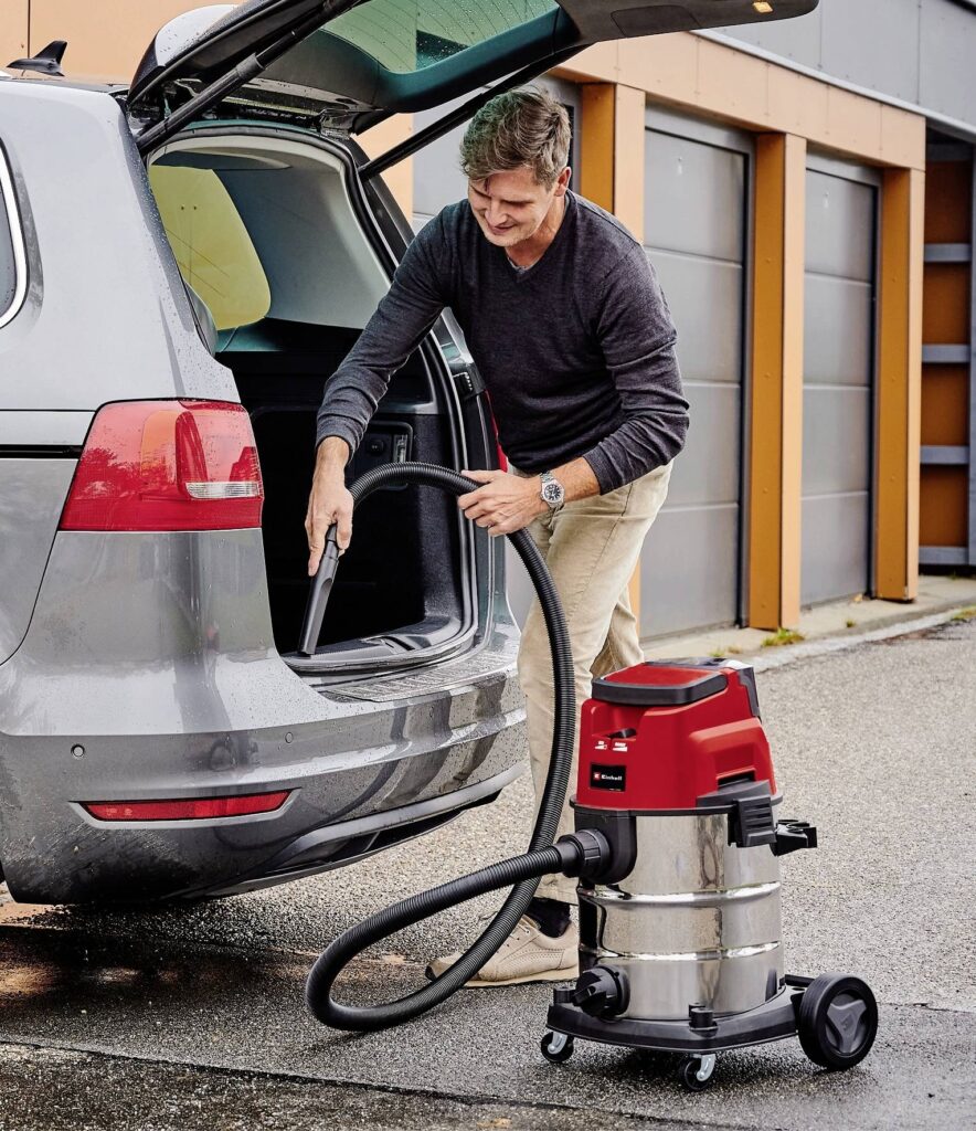 El aspirador en seco y húmedo con batería de Einhell TE-VC 36/25 Li S-Solo es un ayudante indispensable en la vida cotidiana, ya que limpia todas las superficies profundamente hasta los poros y elimina el polvo y la suciedad con la misma eficacia que los líquidos. El aspirador en seco/mojado con batería pertenece a la gama Power Como miembros de la familia PXC, se pueden utilizar baterías de toda la serie del sistema. La aspiradora en seco y en húmedo tiene dos modos de rendimiento, que puede seleccionar fácilmente con solo presionar un botón. El modo ECO prolonga la duración de la batería y es adecuado para trabajos de aspiración más prolongados. El modo BOOST, por el contrario, aspira sin esfuerzo incluso la suciedad más difícil con la máxima potencia de succión. Equipado con una boquilla combinada para alfombras y suelos lisos, una boquilla para tapicerías para asientos de coche y otros muebles tapizados, así como una boquilla para rincones para rincones de difícil acceso, la aspiradora supera cualquier obstáculo y es ideal para aspirar, Trabajos de secado y limpieza en la casa Taller o garaje de uso. Puedes soplar rápidamente nichos estrechos con la función de soplado y luego aspirar la suciedad. El volumen de suministro también incluye un filtro de espuma para aspirar en húmedo, así como un filtro plisado y una bolsa de papel para aspirar la suciedad para aspirar en seco. La potencia de aspiración de hasta 150 mbar también se puede ajustar en zonas de trabajo sensibles mediante el regulador de aire que falta en el mango. El recipiente de acero inoxidable estable y resistente a la oxidación tiene capacidad para suciedad y líquidos de hasta 25 litros y el tornillo de drenaje de agua integrado facilita el vaciado de los líquidos aspirados. Gracias a las ruedas, los rodillos y el asa de transporte, el aspirador en seco/mojado se puede transportar sin esfuerzo al lugar de uso. La robusta manguera de aspiración de plástico de 2,5 metros de largo con un diámetro de 36 milímetros y el tubo telescópico de acero inoxidable garantizan, junto con la alimentación por batería, la máxima flexibilidad. Gracias al tubo telescópico, la aspiradora se puede ajustar individualmente a su propia altura y también es adecuada para uso en altura. Gracias al soporte para accesorios y al soporte para el tubo de aspiración, el aspirador y los accesorios no sólo se guardan de forma rápida y ordenada, sino que también quedan listos para su uso con la misma rapidez. La entrega se realiza sin batería ni cargador,