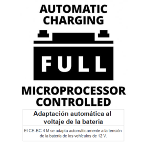 El cargador de baterías Einhell CE-BC 4 M es un cargador de batería inteligente adaptado a las baterías técnicamente avanzadas y de alto rendimiento de los vehículos de motor modernos. El cargador de batería inteligente con control por microprocesador es adecuado para una amplia variedad de tipos de baterías de vehículos y tiene una serie de mecanismos técnicos de protección y cuidado. El enfoque principal del desarrollo es la carga rápida y suave de las baterías para que se logre la vida útil más larga posible a plena potencia. El funcionamiento del cargador es menos complicado que con los dispositivos convencionales debido a un indicador de carga detallado. El todoterreno Einhell es adecuado para baterías de gel, AGM, así como baterías de plomo-ácido sin mantenimiento y de bajo mantenimiento. El CE-BC 4 M se adapta automáticamente a la tensión de la batería de los vehículos de 12 V. El ciclo de carga de varias etapas del cargador de batería Einhell es monitoreado y ajustado automáticamente por el sistema de control del microprocesador. La electrónica de control inteligente analiza el tipo y el estado de la batería conectada e inicia el modo óptimo según sea necesario. La función de carga lenta protege y conserva la batería para un estado de carga permanentemente ideal. Esto hace que el CE-BC 4 M sea adecuado para todo tipo de vehículos, especialmente para vehículos estacionales con largos tiempos de inactividad: en lugar de dejar que la batería se agote lentamente por completo y, por lo tanto, arriesgarse a una descarga profunda, la batería se mantiene suavemente en su nivel óptimo mediante carga por goteo. La carga por goteo alivia las celdas de la batería y extiende su vida útil, evitando así un reemplazo evitable y costoso de una batería de vehículo defectuosa. Los automóviles, motocicletas o scooters están inmediatamente listos para su uso al comienzo de la temporada. Se ha desarrollado un modo de carga de invierno especialmente para temperaturas exteriores inferiores a 5 ° Celsius. Además, el dispositivo está equipado con un modo de reacondicionamiento, que puede dar nueva vida a las baterías profundamente descargadas, y un modo de suministro para su uso como fuente de alimentación. La protección automática contra sobrecarga, cortocircuito y polaridad inversa protege tanto el cargador como la batería. El cargador de baterías Einhell cumple con la clase de protección IP 65, lo que significa que es a prueba de polvo y está protegido contra chorros de agua. El indicador de voltaje y progreso de carga de la batería LCD muestra de un vistazo en qué nivel de carga se encuentra la batería y en qué modo está configurado el cargador. El dispositivo distingue entre cuatro niveles de carga y baterías de 12 voltios. La pantalla del cargador de batería Einhell también indica una conexión incorrecta de los alicates e inmediatamente llama la atención del usuario sobre cualquier problema. Gracias a los terminales de batería totalmente aislados, el cargador de batería de Einhell se puede conectar de forma fácil y segura. La carcasa está equipada con un ojo de suspensión para la fijación a la pared.