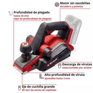 Impulsado por el avanzado motor sin escobillas PurePOWER de Einhell, el TP-PL 18/3 Li BL no solo proporciona más potencia, sino también una vida útil prolongada en comparación con los motores tradicionales de escobillas de carbono. Este cepillo está equipado con ejes de cuchillas de gran tamaño que aseguran resultados de cepillado de alta calidad, mientras que su placa base de aluminio macizo garantiza una superficie de trabajo plana y estable. Con tres ranuras en V integradas, podrás biselar bordes con facilidad. La expulsión de virutas es ajustable a ambos lados, ofreciendo flexibilidad durante el trabajo, y el adaptador de aspiración de Ø 36 mm es compatible con cualquier aspirador en seco y húmedo de Einhell, manteniendo tu área de trabajo limpia y libre de escombros. La zapata de estacionamiento automática protege tanto el cepillo como las piezas de trabajo, y el asa ergonómica con superficie de agarre suave asegura un manejo cómodo y sin fatiga. El cepillo incluye un tope paralelo para un cepillado preciso y recto, un tope de profundidad de plegado para fabricar tacones fácilmente, y dos cuchillas de cepillado TCT duraderas y reversibles. Como miembro de la versátil familia Power X-Change de Einhell, el TP-PL 18/3 Li BL es compatible con todas las baterías de esta serie, y se recomienda el uso de baterías con una capacidad de 2,5 Ah o superior para un rendimiento óptimo. La batería y el cargador se venden por separado.
