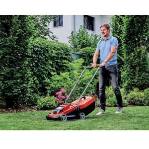 El cortacésped inalámbrico Einhell GE-CM 18/32 Li – Solo ayuda a poner en forma el jardín rápidamente: potente, independiente, sin cables y ecológico. El cortacésped inalámbrico está recomendado para céspedes de hasta 180 m² con una anchura de corte de 30 cm. El cortacésped tiene un motor brushless “Sin Escobillas” Einhell y una carcasa de plástico de alta calidad resistente a los impactos. El motor sin escobillas del cortacésped inalámbrico proporciona más potencia y funciona durante más tiempo que un motor convencional de escobillas de carbón. Para un corte práctico, dispone de un ajuste de la altura de corte axial de 3 niveles. El mango largo plegable con empuñadura blanda permite guardarlo en un espacio mínimo. Para facilitar el transporte hay un asa de transporte integrada. La cesta de recogida de hierba tiene una capacidad de 25 litros. Las grandes ruedas reducen la tensión en el césped mientras se corta. La batería y el cargador no se incluyen en la entrega y están disponibles por separado.