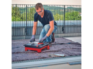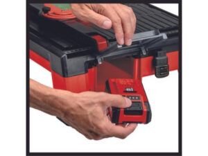 La máquina de corte de azulejos con batería TE-TC 18/115 Li-Solo de Einhell es un «peso ligero» entre los cortadores de azulejos gracias al accionamiento con batería de la potente familia Power X-Change y puede usarse flexiblemente en todo lugar – alejado de fuentes de corriente como enchufes y generadores. Las baterías con celdas de iones de litio de alta calidad se pueden combinar con todos los miembros de la familia Power X-Change. Las baterías de la serie Power X-Change son adquiribles por separado, por ejemplo, como práctico set para principiantes. La máquina de corte de azulejos dispone de una mesa inclinable con escala angular de 0º a 45º, el tope angular es regulable de -45º a +45º para cortes a inglete. La profundidad máxima de corte a 45° es de 16 mm y a 90° de 24 mm. El tope paralelo con escala sirve exactamente cortes rectos. Un recipiente de agua integrado aporta suficiente refrigeración de la hoja de sierra durante el corte, una protección del disco de corte ofrece la seguridad necesaria. Los pies de goma antideslizantes y con pocas vibraciones aportan posición fija. La posibilidad de agarre confiere movilidad del cortador de azulejos con batería ligeros. En el envío está incluido un disco de corte de diamante y la herramienta, batería PXC y cargador son adquiribles por separado.
