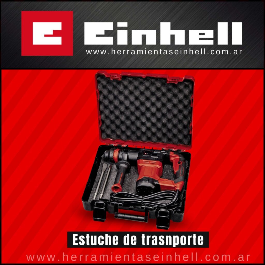 MARTILLO DE DEMOLICIÓN, MARTILLO PERCUTOR ELÉCTRICO SDS PLUS CINCELES MALETIN DEMOLEDOR HORMIGON 5J EINHELL ROJO MANGO AMORTIGUACION CONSTRUCCION 750 W