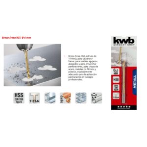 Broca-fresa, HSS, nitruro de TITANIO, para taladrar y fresar, para realizar agujeros alargados y para ensanchar perforaciones, para chapa de acero, metales no férreos y plástico, especialmente adecuado para la aplicación permanente en trabajos profesionales.