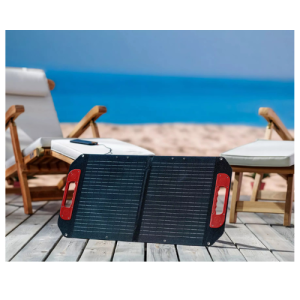 El módulo solar de 40 W alcanza un nivel de eficiencia del 23 %, proporcionando un alto rendimiento en la conversión de la luz solar en electricidad utilizable. Los soportes desplegables permiten una alineación óptima con el sol y ofrecen una base estable en casi cualquier superficie.