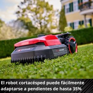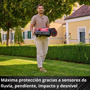 El cortacésped robot FREELEXO 500 de Einhell permite mantener el césped en perfecto estado de forma muy sencilla. El cortacésped robot forma parte de la potente familia Power X-Change de Einhell, que ofrece una flexibilidad ilimitada dentro de la familia de sistemas. El FREELEXO está equipado con una amplia gama de funciones, entre las que se incluyen programas de corte multiárea, de corte puntual y de corte de segunda zona. Esto significa que no solo corta la zona principal del césped, sino que también cubre zonas de difícil acceso y zonas secundarias, cortando el césped a una altura de entre 30 mm y 60 mm. Además de los programas de corte, también se pueden programar y ajustar los tiempos de corte con precisión de minutos. Estos ajustes se pueden realizar a través de la práctica aplicación Einhell Connect o mediante el intuitivo teclado con pantalla LED del propio cortacésped. La aplicación se puede conectar al cortacésped robot a través de Bluetooth o Wi-Fi. Las últimas actualizaciones de firmware se instalan automáticamente en el cortacésped durante la noche de forma inalámbrica a través de la conexión Wi-Fi, por lo que no se necesita una memoria USB. Gracias a la conexión a la red doméstica, también podrá ajustar la configuración cuando no esté en casa. Para garantizar la seguridad del robot cortacésped, se han instalado varios sensores, como el sensor de impacto, el de inclinación y el de elevación. El sensor de lluvia protege el césped y envía automáticamente el cortacésped a la estación de carga cuando llueve. Un código PIN protege al FREELEXO contra robos. El robot cortacésped vuelve a su estación de carga de forma totalmente automática. La estación de carga está equipada con un modo ECO, que apaga la señal de bucle tan pronto como el cortacésped se ha acoplado. La altura de corte se puede ajustar de forma continua mediante un mecanismo de ajuste central en la carcasa del propio robot cortacésped. Con sus amplios accesorios de instalación, el FREELEXO 500 está diseñado para superficies de césped de hasta 500 m² y puede soportar pendientes de hasta un 35 %. Con un grado de protección IPX5, el robot cortacésped es resistente a las salpicaduras y, por lo tanto, fácil de limpiar. El equipo de instalación incluye 190 piquetas de fijación, 6 tornillos de fijación, 3 bloques de conexión y 130 m de cable delimitador. También incluye una batería Power X-Change Plus de 3,0 Ah, una estación de carga y 3 cuchillas de repuesto.