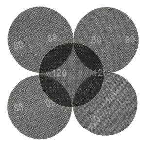 Incluye 3 discos de lija con granos P80 y 2 granos P120. Se pueden fijar fácilmente al disco de lijado con un accesorio de micro velcro.