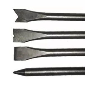 Set de 4 cinceles compatibles con Martillo Demoledor Neumático DMH 250/2. Incluye un cincel plano, uno acanalado, uno acanalado en V y uno tubuliforme.