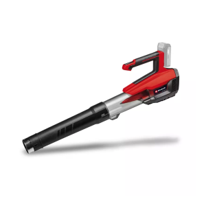 El soplador de hojas con batería GP-LB 18/200 Li E-Solo de Einhell es un ayudante acreditado en torno a la casa, ante todo durante la gran limpieza de primavera y otoño. Como miembro de la familia Power X-Change, todas las baterías de la serie del sistema se pueden combinar con el soplador de hojas. Para el funcionamiento se necesita una batería de 18V; el envío se realiza sin batería ni cargador, estos son adquiribles por separado, por ejemplo, como un práctico set para principiantes. Para un rendimiento óptimo se recomienda una batería PXC de 3.0 Ah o superior. El soplador de hojas con batería es considerablemente más silencioso respecto al pariente con motor de gasolina y más fácil de manejar por el menor peso. El asa de equilibrado con agarre suave permite un trabajo ergonómico para una manipulación especialmente cómoda. El soplador de hojas con batería se acciona por el motor sin escobillas potente y de bajo desgaste, que dispone de más potencia y un mayor tiempo de funcionamiento que motores con escobillas de carbono convencionales. La tecnología de ventilador axial ofrece un rendimiento óptimo y se activa la máxima potencia de soplado por el interruptor turbo. El robusto anillo metálico en el extremo de tubo sirve como protección a choques y garantiza una larga vida útil del tubo de soplado. La regulación de velocidad de giro electrónica está equipada con un práctico indicador LED multietapa. El tubo de soplado desmontable puede montarse sin herramientas. Para la conservación sencilla, ahorrando espacio, el soplador de hojas con batería dispone de un soporte de pared integrado.