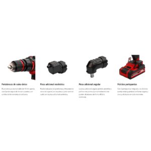 El taladro con batería TE-CD 18/45 3X-Li +22 (1×2,0 Ah) de Einhell es una herramienta compacta y versátil con engranaje de 2 velocidades y un par máximo de 45 Nm para perforación potente y rápido atornillado. Con la más moderna tecnología con las baterías de iones de litio de alta calidad de la serie Power X-Change ya no son un problema fáciles perforaciones, p. ej. en madera, para un taladro con batería. El sistema de baterías Power X-Change dentro de la familia del sistema puede combinarse de forma flexible y sin límites: El talador puede hacerse funcionar con todas las baterías PXC. El taladro siempre está listo para su uso gracias a la tecnología de iones de litio sin autodescarga. Con los 21 niveles de par, la unidad electrónica de velocidad de giro da lugar a un trabajo adaptado al material y a la aplicación. El portabrocas desmontable ofrece máxima flexibilidad al trabajar, la pieza adicional angular de 90º sirve para el atornillado y perforación en puntos estrechos, además, en el alcance del envío está contenida una pieza adicional excéntrica en el taladro con batería para trabajar en esquinas y puntos cerca del borde. La iluminación LED integrada ofrece un trabajo óptimo en zonas oscuras. El diseño ergonómico del talador aporta un manejo sencillo y cómodo con el agarre suave para un sostén firme y seguro. El portapuntas en el taladro sirve para la conservación práctica de las puntas de cambio. El taladro con batería se envía con una batería PXC de 2,0 Ah y cargador rápido en práctico maletín E-Box Basic. Además, en el alcance del envío está un set de puntas y brocas de 22 piezas.