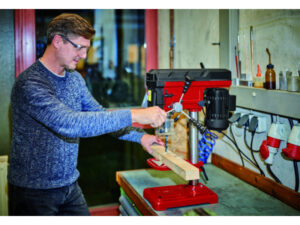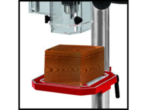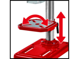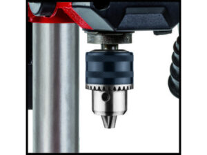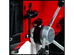 La taladradora de columna TC-BD 500 de Einhell es una herramienta de precisión para altas exigencias: Gracias al saliente de 115 mm, es posible realizar taladros precisos en piezas grandes de madera o metal de forma fiable. Con 500 vatios de potencia y 9 velocidades, de 300 a 2410 rpm, se consigue un taladrado preciso y adecuado a cada material. Por lo tanto, la taladradora de columna puede utilizarse tanto a velocidades muy bajas como muy altas y, por lo tanto, es excelente para materiales duros (metal) y blandos (madera). Es posible realizar taladros precisos gracias al tope de profundidad ajustable. La profundidad máxima de perforación es de 50 milímetros. Cuenta con un robusto portabrocas de corona dentada y un soporte MK2, lo que permite utilizar brocas de cono morse y las brocas convencionales con un diámetro entre 1,5 mm y 13 mm. El husillo con rodamiento de bolas garantiza un funcionamiento duradero y suave. La taladradora de columna se puede ajustar de forma variable gracias a la regulación continua de la altura de la mesa de taladrado. Además, la mesa de taladrado puede girar hasta 90° e inclinarse hasta 45°. La manivela de tres brazos con revestimiento de goma demuestra su eficacia gracias al efecto palanca, ejerciendo una presión precisa sin fuerza excesiva. El protector contra virutas abatible garantiza la seguridad durante el uso y el interruptor de encendido/apagado con disparo de tensión cero evita que la máquina se reinicie involuntariamente después de un corte de energía.